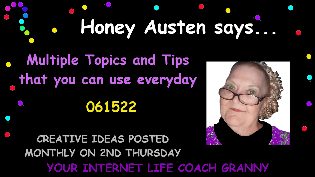 Today, my sweethearts, 06/15/22, on Tea and Honey, with me, your internet Grandmother, Honey Austen, will clue you in! You will learn to love your body more with some arm exercises in my Self-Improvement section. I will divulge cooking tips about boiling eggs in my Creative Corner section. You singles will love my favorite Dating Tip in my Relationships section. If you wait until the end of this post, I will be sharing how you too can make your money stretch from payday to payday with my best budget tip in my Frugal Living section. My thumbnails all look similar but if you look closely, you will see the date of posting and will even tip you off to whatever the main topics are for each video.