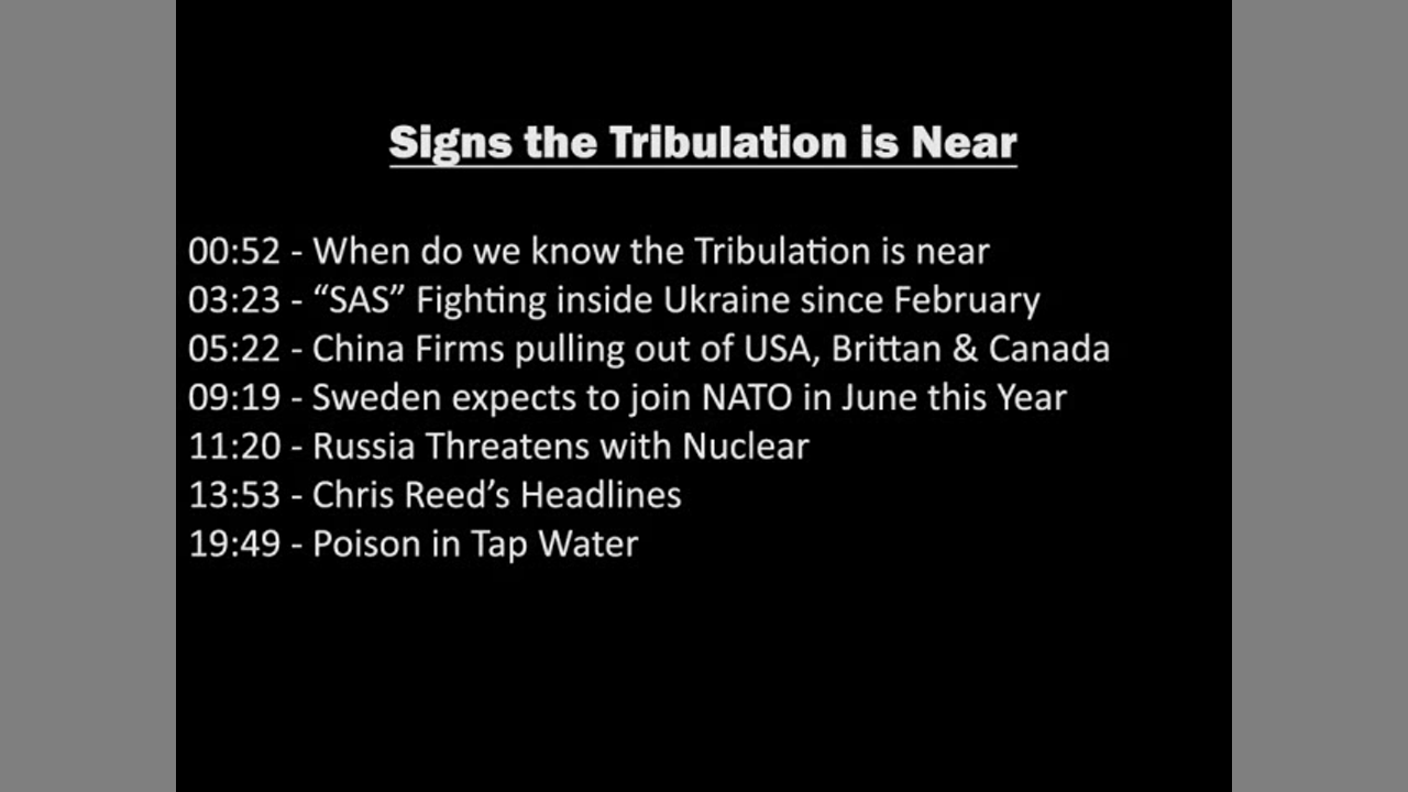 Today we look at current events happening in Ukraine, Russia and China to see how it correlates to Bible Prophecy. If we look at all these signs we can see that the Tribulation is drawing near. There are Wars and rumors of Wars just like Revelation explains.