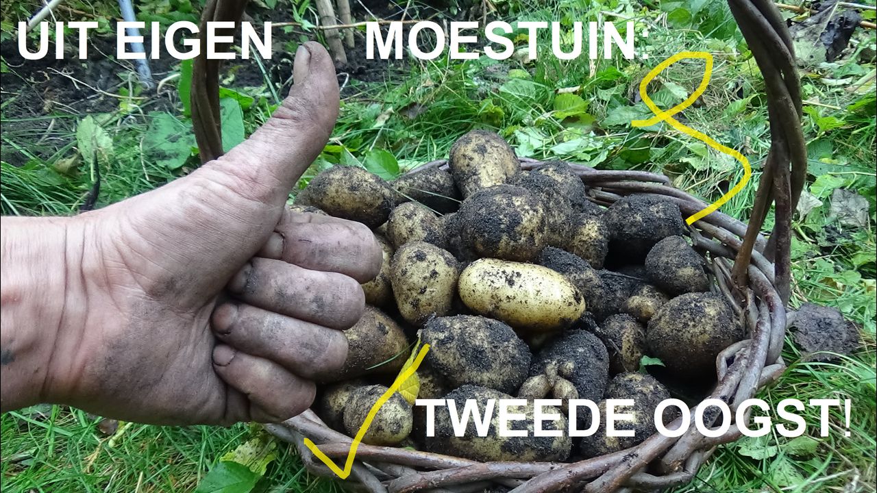 2020-10-25 MOESTUIN-SEIZOEN VOORBIJ en WEER LEKKERE AARDAPPELS GEOOGST T