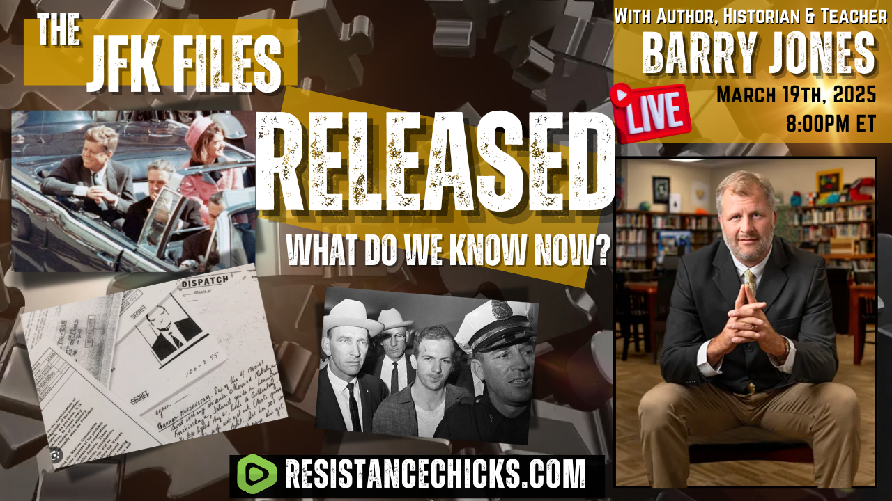 After decades shrouded in deceit, corruption, lies, and treason, the JFK files have finally been released. Do they tell us anything new and finally confirm suspicions that we've all held? We are joined LIVE tonight by JFK historian and author Barry Jones. Barry is a teacher who has specialized in the JFK assassination for years, along with the who, and even "what", has been behind some of America’s most disastrous deeds. Mr. Jones has a captivating grasp on dates, times, and the who’s who of the Treasonous Cabal- we know them as the Deep State. Barry is not your average high school history teacher. His mastery of historic events takes his students, both young and old, down a palpable trail, unwinding the tangled knots of facts and fiction. I hope you will grab a notebook and pen and join us for this riveting conversation. You will be so glad you did! Think you know a lot about these deep deeds; think again, get ready to get educated! Connect with Barry and Read More: https://www.resistancechicks.com/jfk-files-released/
