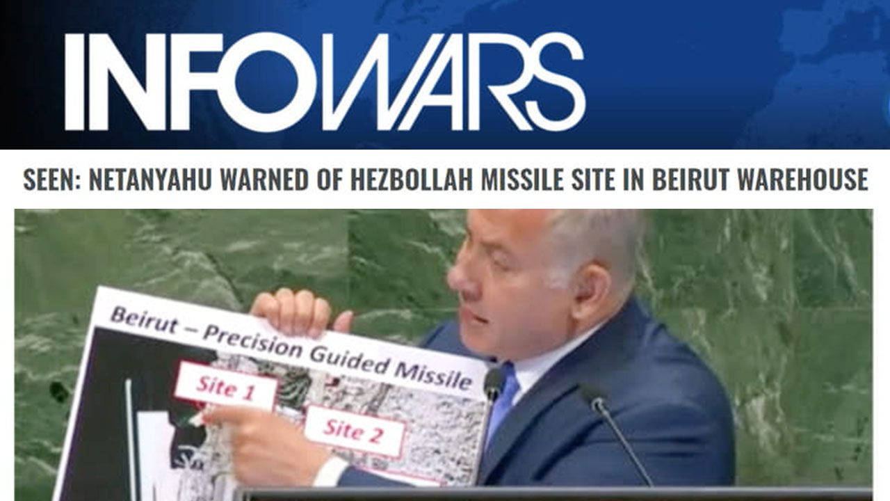 Israeli Prime Minister Benjamin Netanyahu warned of Hezbollah missile sites in downtown Beirut in a warehouse that happens to be near or the exact location of Tuesday’s devastating explosion, according to resurfaced footage of a 2018 UN speech.