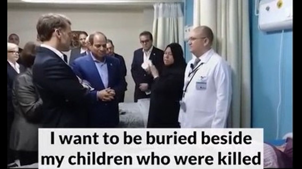 A woman from Gaza, who traveled to Egypt for medical treatment after she and her family were injured in Israeli attack spoke to French President Emmanuel Macron and Egyptian President Abdel Fattah El-Sisi.