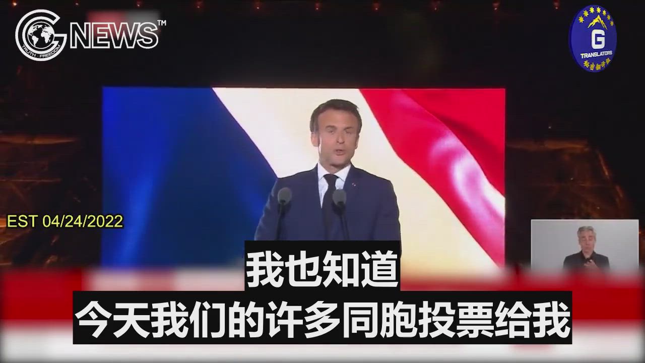 04/24/2022 Emmanuel Macron comfortably wins second term in French Presidential election and gives speech, saying many vote for him are to build a barricade against the ideas of the far right