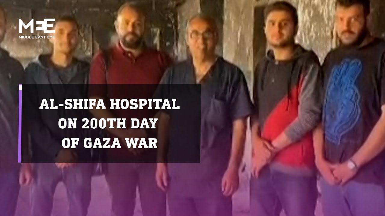 Doctors from al-Shifa Hospital speak on the extent of destruction on the 200th day of the Gaza war. Dr Marwan Abu Saada, head of the rehabilitation medical committee, highlighted that before the war, al-Shifa Hospital accommodated 750 beds, 32 intensive care units, and 26 operating rooms, serving approximately 250,000 people in Gaza.
