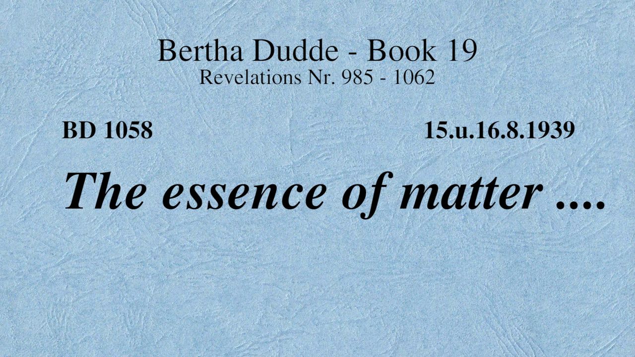 BD 1058 - THE ESSENCE OF MATTER ....