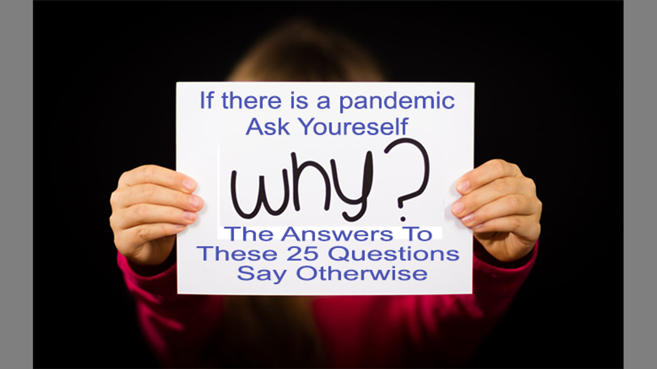 This BGB reproduced video poses 25 questions that you need to ask your pro pandemic family, friends, neighbours and acquaintances. If they answer truthfully, the scales should fall from their eyes and they should be able to see the big picture.