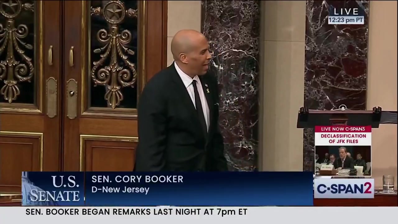 Senator Cory Booker breaks record with 25-hour anti-Trump rant – broadcast, yesterday, April 1.