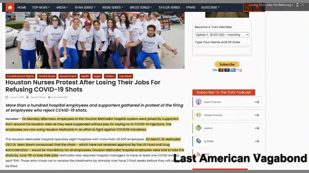 Houston Nurses Fired For Refusing Covid-19 Vaccines Last American Vagabond Coronavirus Lockdowns