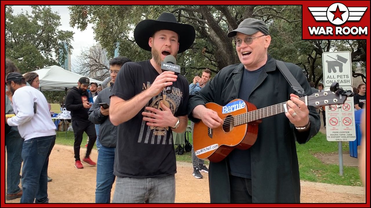 Owen Shroyer Invades Bernie Rally In The Infowars Battle Tank!