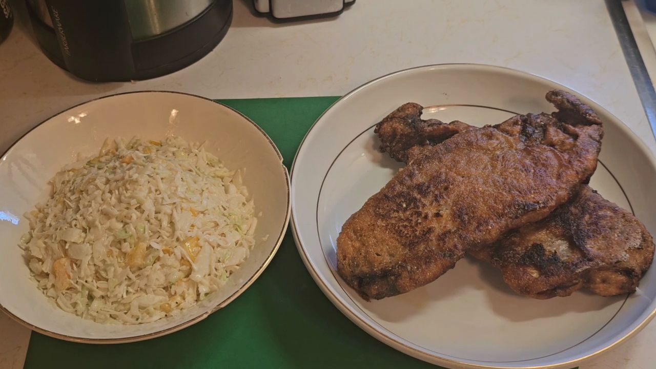 Fried redfish with homemade coleslaw.